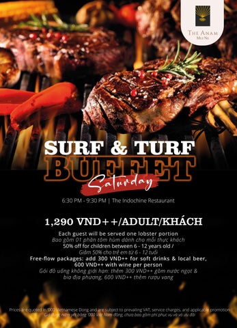 Free-flow packages: add 300 VND++ for soft drinks & local beer, 600 VND++ with wine per person