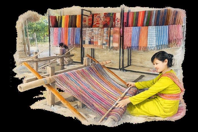 Amid the tranquil surroundings of the resort, the gentle, rhythmic sounds of the brocade-weaving loom echo softly, an evocative reminder of the rich cultural heritage of the Champa people of this land.