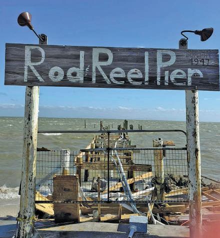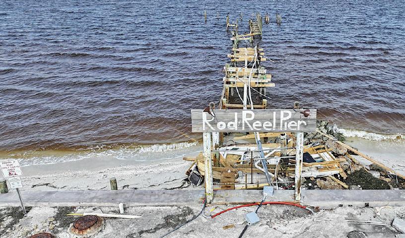 Only a sign and some planks at the Rod & Reel Pier, 875 N. Shore Drive, Anna Maria, remain of the structure following Hurricane Milton, which made landfall to the south at Siesta Key about 8:30 p.m. Oct. 9. Islander Photo: Jacob