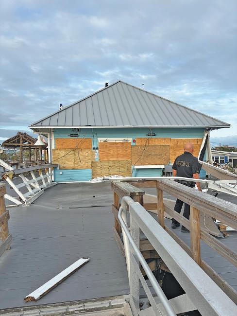 a roof during Hurricane Milton, as well as suffered damage in Hurricane Helene. Ginny’s and Jane E’s business owner Paul Foster told the Islander he thinks he’ll reopen before christmas. “I’m thankful, very thankful,” he said Oct. 12. Islander