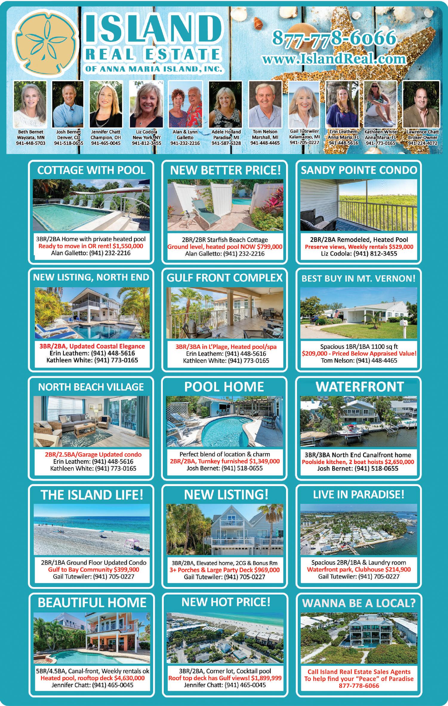Compiled by Island Real Estate staff. IRE can be reached at 941-778-6066, islandreal.com.