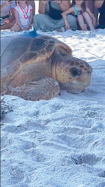 A loggerhead tagged on AMI and named for Suzi Fox heads to the Gulf for Tour de Turtles educational effort. More pages 9, 18. Islander Photo: Jacob Merrifield