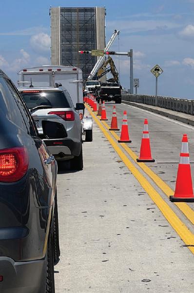 Bridge waits June 26 for a boat to pass through the open bascule and for workers to allow vehicles to cross. islander