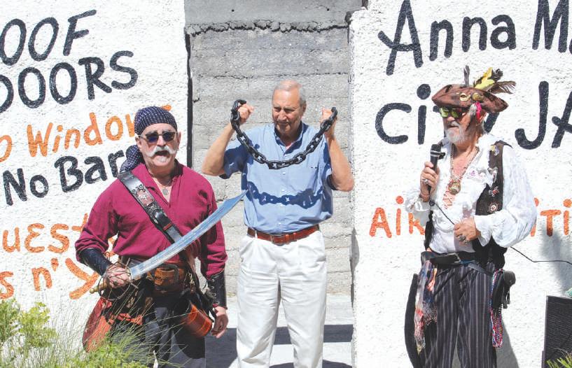 anna maria Island Privateers roger “hoodat” murphree, left, and ron “candy man” fisher, right, capture, chain and detain anna maria mayor dan murphy march 14 in the old jail outside the anna maria Island historical society museum, 402 Pine ave., anna maria. the Privateers raised $1,336 for amIhs by “ransoming” murphy to the heritage day crowd, as well as to local businesses via phone calls. for more photos, turn to page 16. Islander