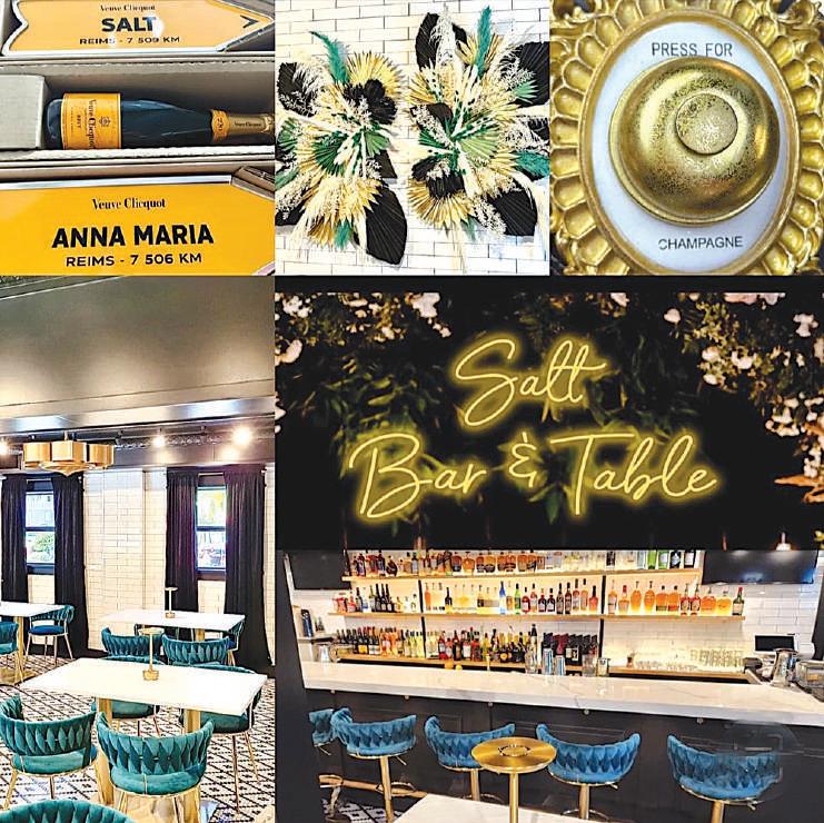 Bartender holly Krzeminsky pours behind the bar at SaLT Bar & Table, a redo of the old Sharky’s Seagrill at 2519 gulf Drive, Bradenton Beach. SaLT hosted a “soft opening” feb. 28-March 1 and the restaurant threw open the doors for nightly service at 4 p.m. March 3. It’s posh and beachy, bright and shiny new — and promising. general manager/ operations partner Steven Sipos has the reins, with a great team in the kitchen and at the front of the house. for more, call the restaurant at 941-8969897. Islander Photo: Bonner Joy