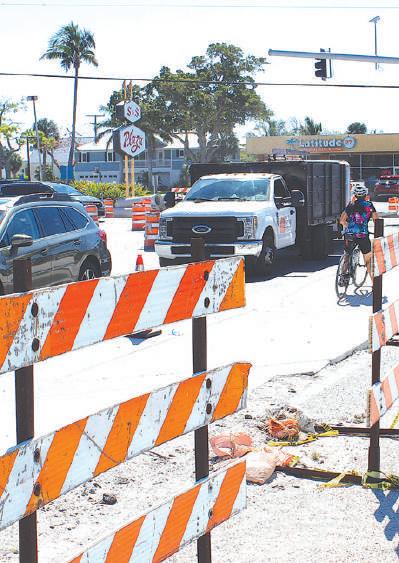 Motorists make their way March 1 through construction along Marina Drive at the gulf Drive intersection in holmes Beach, part of a city project to improve the corridor. Islander Photo: ryan Paice