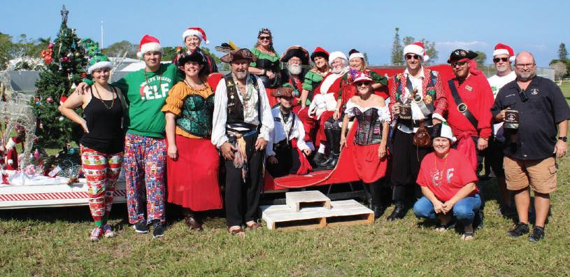 following the lead of the Privateers’ ship, the Skullywag, and community-based floats, cars, ATVs, golf carts, LSVs, bicyclists, church, business and city participants — all tossing candy and beads to crowds lining the streets from the starting mark at coquina Beach, traveling north along Gulf Drive to Pine Avenue, winding up at city Pier Park.