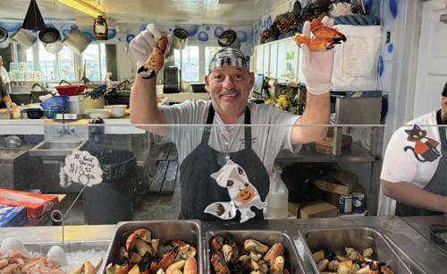 Greg Surace, who works at the Star Fish Seafood Market, 12306 46th Ave W., cortez, holds up stone crab claws Oct. 16, the second day of the market season. Islander