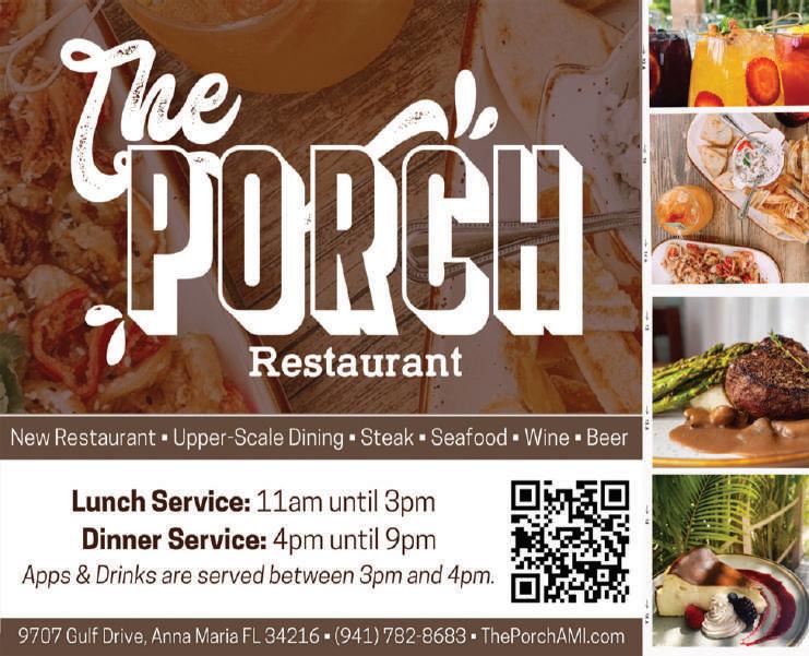 Page 2 THE ISLANDER | islander.org Feb. 8, 2023 Great for all ages! Tours on Sale NOW! CALL OR BOOK ONLINE TODAY! 941-778-2288 www.bradentonbeachmarina.com 402 CHURCH AVE., BRADENTON BEACH RENT A BOAT BE YOUR OWN CAPTAIN! Pontoons and Deckboats or Multi-Day Rentals Take a relaxing 90-minute cruise, featuring dolphin, sandbar and sunset cruises — fun for the whole family! SUNSET CRUISES & DOLPHIN TOURS CALL US ABOUT our SANDBAR AND EGMONT KEY EXPRESS Or Cruise with us aboard the Anna Maria Princess Music 4:30 p.m. Wednesdays Comedy 6 p.m. Fridays Plenty of parking at the marina!