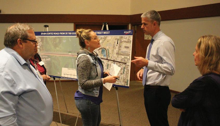 elizabeth shore, owner of bunny and Pirates bazaar, 12404 cortez road W., cortez, listens to doug Hershey of the Florida department of transportation talk about how the new bridge might impact her business. “i understand that things change and the area is developing and we have to change with it,” she said. “my main concern is how is it going to affect my business and i felt really good to hear that they were doing their best to keep people as intact as they could while they are doing what they need to do for the area. You just have to grow with the times.” islander