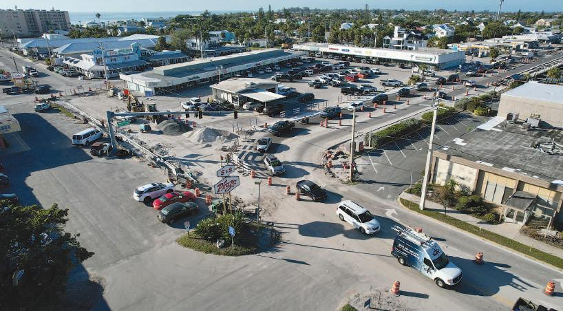 a bird’s eye view looking northwest of the ongoing road work Feb. 2 on gulf drive in Holmes beach’s city center. islander Photo: Jacob merrifield
