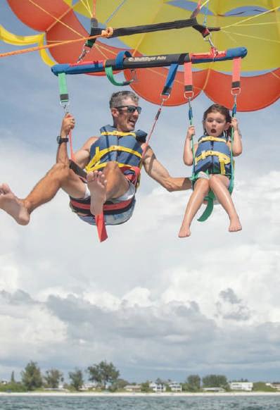capt. david White, charter fishing guide, rides high over anna maria island July 20 with daughter Layla, part of her 7th birthday celebration. White said, “She was apprehensive at first, but thoroughly elated when she got up in the air.” He added that it was so quiet in the air that it felt surreal. islander Photo: anne Yarbrough