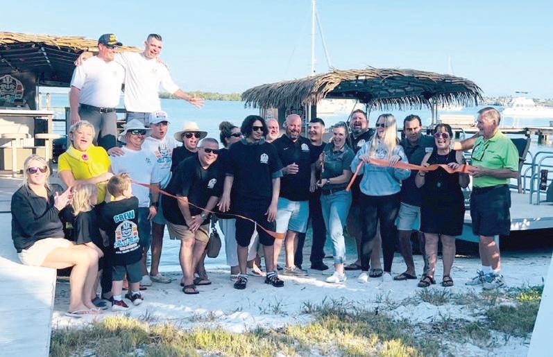 chamber board member; Rick and Adrienne Cardinale and Frank Galati, Shore Thing owners; bill Romberger, bev Kilpatrick and Dan Alderson, chamber board members; and Shore Thing Tiki Cruises’ family members and crew. Islander Photo: Courtesy AMICofC