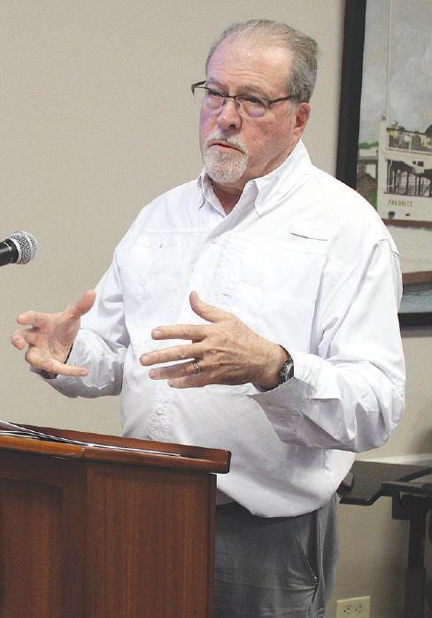 Anna Maria Mayor Dan Murphy announces at a Feb. 9 city meeting that state Rep. Will Robinson Jr. has agreed to back off his proposal to explore consolidating the island’s three municipalities. Islander Photo: Ryan Paice