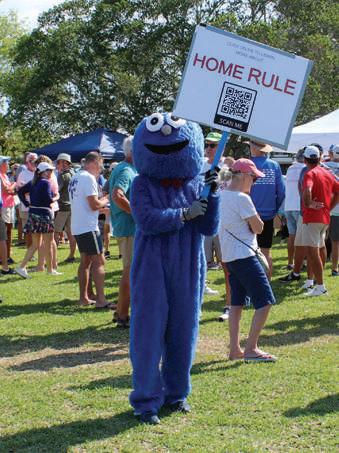 Barbara Ehren, president of the anna Maria Island and West Manatee Democratic Club, speaks May 4 to a crowd at Holmes Beach city field, adjacent to city hall at 5801 Marina Drive, during a rally to protest the potential consolidation or dissolution of the three island municipalities and the creation of a county parking garage in Holmes Beach. Ehren called for rallygoers to send their objections to state representatives and unseat Manatee County Commissioner Kevin Van Ostenbridge, R-District 3, in the 2024 election. For more, see page 5. Islander