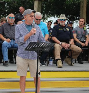 Bradenton Beach Police Chief John Cosby helps hand out tickets Oct. 8 at the moose Lodge of anna maria island’s Queen of Hearts game. The raffle is available to lodge members and works by selling tickets for a chance to uncover the queen among 54 sealed envelopes. during the drawing, the queen was discovered in envelope #48, crowning a new winner, who was not present. The jackpot was $273,000 — minus taxes. Ten other participants took home $1,000 prizes. islander Photo: robert anderson