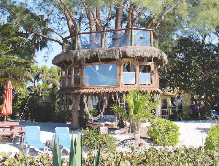 the lynn tran-Hazen, richard Hazen treehouse remains standing Jan. 27 behind their home and the angelinos sea lodge vacation rentals they own at 2818 ave. e., Holmes beach, despite more than 10 years of litigation over the structure’s removal.
