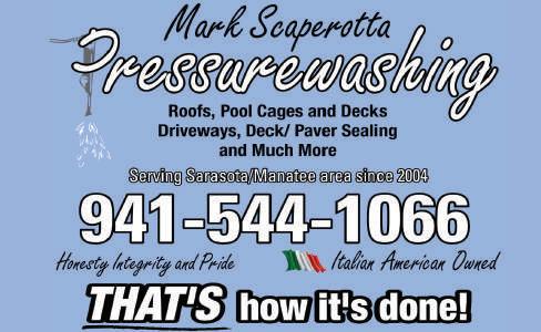 call HYdro clean. Full-service pressure washing, sealing. Pavers, travertine and natural stone. Window washing too, up to three stories. call Jacob, 941-920-2094.