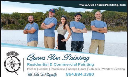 QUEEN BEE PAINTING: “We Do It Royally.” Interior/exterior painting and pressure washing, pool decks, garage floors, cabinets, popcorn ceiling and wallpaper removal, drywall, door and trim install and repair, window cleaning. Sheryl, 864884-3380.