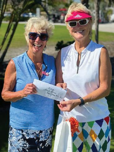 Rene Chapman and Mary Ann Latham take the orange flight prize in the KRC member/ member tournament.