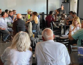 Mario Williams, on spring break from a Tennessee college, brought his guitar to Slicker’s Eatery, 102012 Cortez Road, Cortez, March 22, where he found a crowd of hungry music-lovers, both locals and Pittsburgh Pirates management, players, staff and their families. In the audience were Mario’s parents, Travis Williams, CEO of the Pirates, and mom Nikki. Hunter Duggins, Gunnar Earnest, Jax Stoehy and Beckham Scott also were among about 20 others from the Pirates organization who went to give Bob Slicker, owner, a boost in business to follow the long hurricane recovery. Islander Photo: Bonner Joy