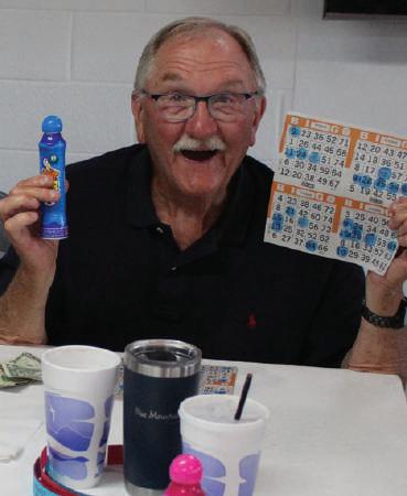 Cal Broek of Michigan holds up a winning card during the March 27 bingo night at the Annie Silver Community Center, 103 23rd St. N., Bradenton Beach. Islander