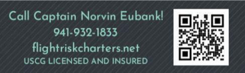 WELCOME ABOARD JOYFISH Charters for private fishing, sunset cruises, and dolphin watching. Check out joyfishcharters.com or follow us on Facebook. Call to reserve, 941-840-3181.