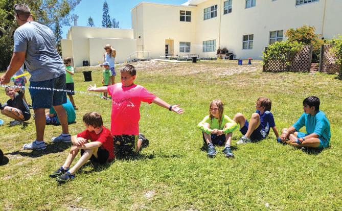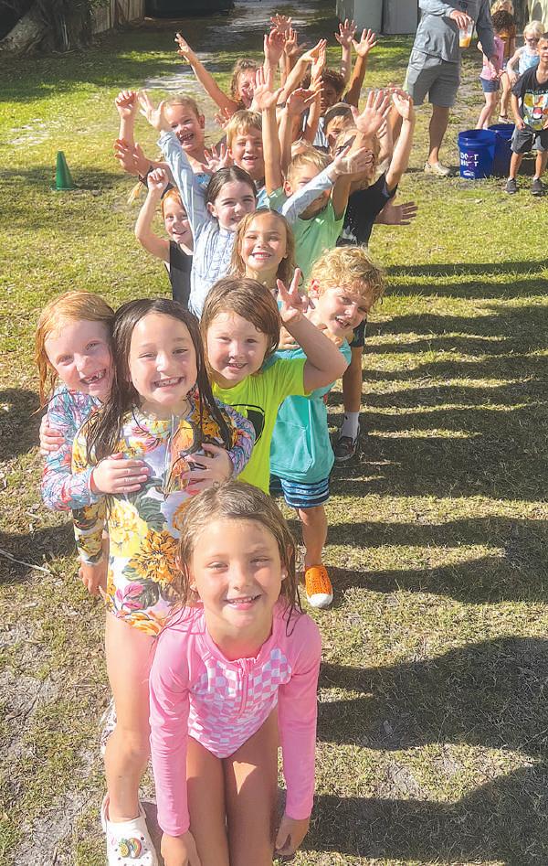 anna maria Elementary School kindergartners line up for a sponge race may 19 at field day — an annual tradition of outdoor games and challenges — that allows a break from the classroom routine for the student body, teachers and staff at the end of the school year.