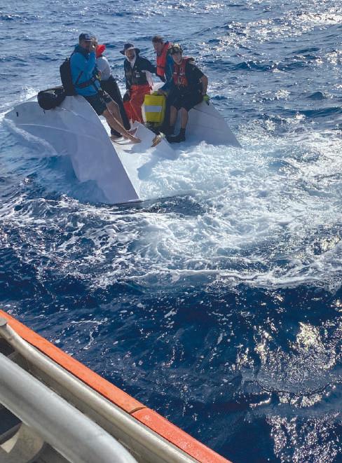 A Station Cortez rescue crew rescued four people from a capsized vessel about 40 miles west of Anna Maria Island, according to a news release.