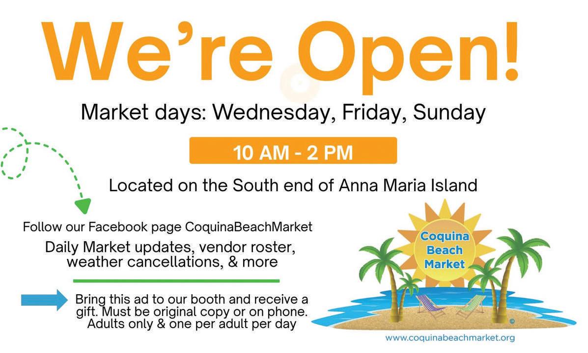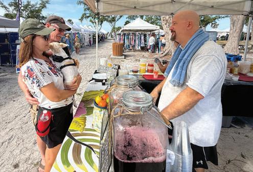 Terry and Bia Robinette of Lake Mary Oct. 1 at the Coquina Beach Market. RIGHT: People peruse local wares on the opening day of a new season for the Coquina Beach Market in Bradenton Beach. The market operates 10 a.m.-2 p.m. Wednesdays, Fridays and Sundays. Market management said 96 vendors were on board for the 2025-26 season.