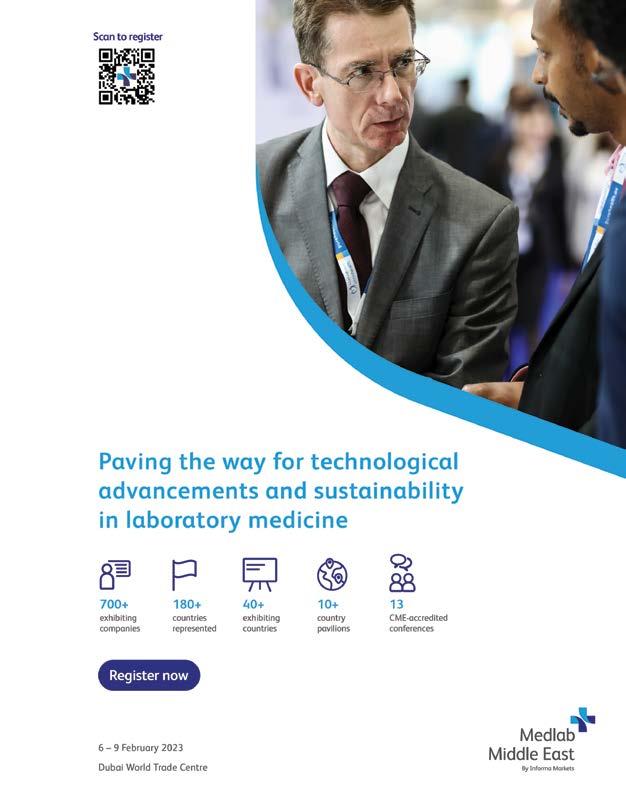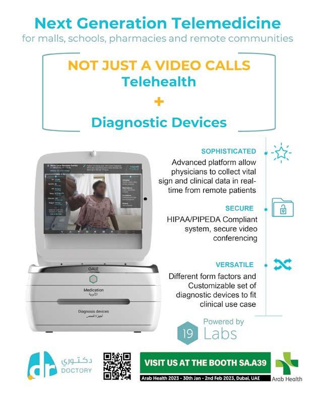 OFFICES IHMC, Cyprus +357 96 158661 Dubai +971 50 2971007 Printing Distribution KSA - UAE - OMAN - TURKEY LEBANON - JORDAN - KUWAIT BAHRAIN - QATAR - EGYPT All images from shutterstock© unless provided by clients. All rights reserved by the HOSPITALS magazine. No part of this publication can be reproduced in any form without prior permission in writting from the publisher. ةحصلا رمتؤمو ضرعم داقعنلا يسكعلا دعلا أدب يراجتلا يبد زكرم يف »ثليه بارأ« يبرعلا ىلإ يلاحلا رياني 30 نم يبد يف يملاعلا قئاقدلاو يناوثلا صقانتت .لبقملا رياربف 2 ،ريبكلا يلودلا يحصلا ثدحلا اذه ءاقلل تاعاسلاو ضرعملاف .تايباجيإو تاردابم نم لمحي ام عم لعجو نواعتلل نييسيئرلا ةحلصملا باحصأ عمجي للاخ نم يباجيإ ريثأت تاذ ةعانص ةيحصلا ةياعرلا ةروث ثدحت نأ اهنأش نم ،ةركتبمو ةمادتسم لولح .ةمداقلا لايجلأل ةيحصلا ةياعرلا يف نيعنصملل اهل ليثم لا ةصنم ،ثليه بارأ رفوي ملاعلا يف نيدئارلا نيعزوملاو ةلمجلا راجتو كراشيسو .يملعلاو يبطلا عمتجملاب ءاقتللإل ثدحأ ضرعت ةكرش فلاآ 4 نم رثكأ ضرعملا يف ةياعرلا يف صصختم فلأ 130 نم رثكلأ اهتاراكتبا لضفأ ميدقتب همازتلابو .ةلود 163 نم ةيحصلا بارأ دعتسي ،ةيحصلا ةياعرلا عمتجمل نكمم ثدح ىلإ ةيملاعلا ةيحصلا ةياعرلا ةعانص ديحوتل ثليه ةصاخلا تارمتؤملا نم ةعساو ةعومجم بناج .ةراجتلاو لصاوتلاو ملعتلل ةيحصلا ةياعرلا ةعانصب 2023 يبرعلا ةحصلا ضرعم يف نيضراعلل نكمي ىلع لوصحلاو ةركتبملا لولحلاو تاجتنملا ضرع نم نيلمتحملا نيرتشملا ةلباقمل تقولا نم ديزم نأ ةيحصلا تاعاطقلل نكمي امك .ملاعلا ءاحنأ عيمج نم ديزملا قيقحتو بسكلا نم ديزمب اهسفن دعت .لبقتسملا يف حاجنلا يف عيمجلاو قيرطلا يف ةدوجلا ةرادإ رمتؤم نوكتس »يبرعلا ىفشتسملا« ةلجمو .راظتنلاا ملاعلل تايلاعفلا لقنو ةبكاوملل امئاد امك كانه ايعس ،ةيحصلا ةمولعملا رشنو ،عسولأا يحصلا ،هلجأ نم يبرعلا ةحصلا رمتؤمو ضرعم دقعني امل .ةدئار ةيحص تاعاطقو ىفاعم ملاع وهو ثليه بارأ تاعاطقو فىاعم لماع ةدئار ةيحص