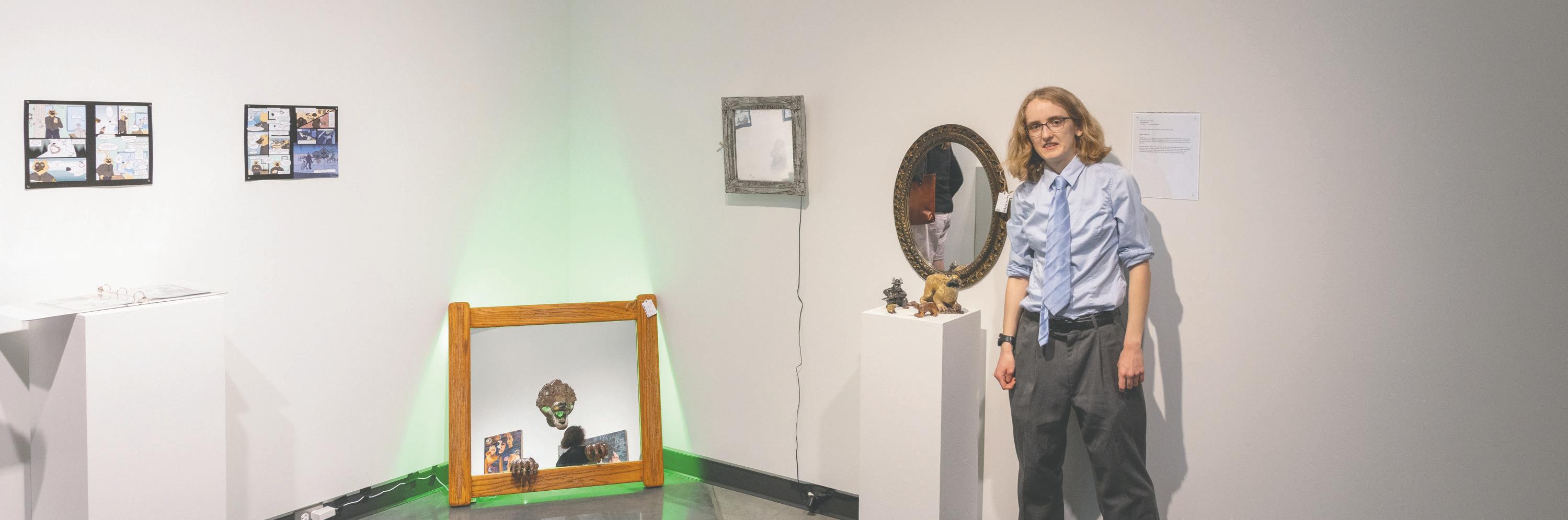 14 students, mere weeks away from walking the graduation stage, had one last hurrah, showcasing their work to professors, peers and patrons in meaningful mediums. The 2026 Bachelor of Fine Arts Exhibition, hosted at the Blue Galleries, presented dedicated work from 14 graduating students. Flip to find out about the techniques used and stories told within three students' works.