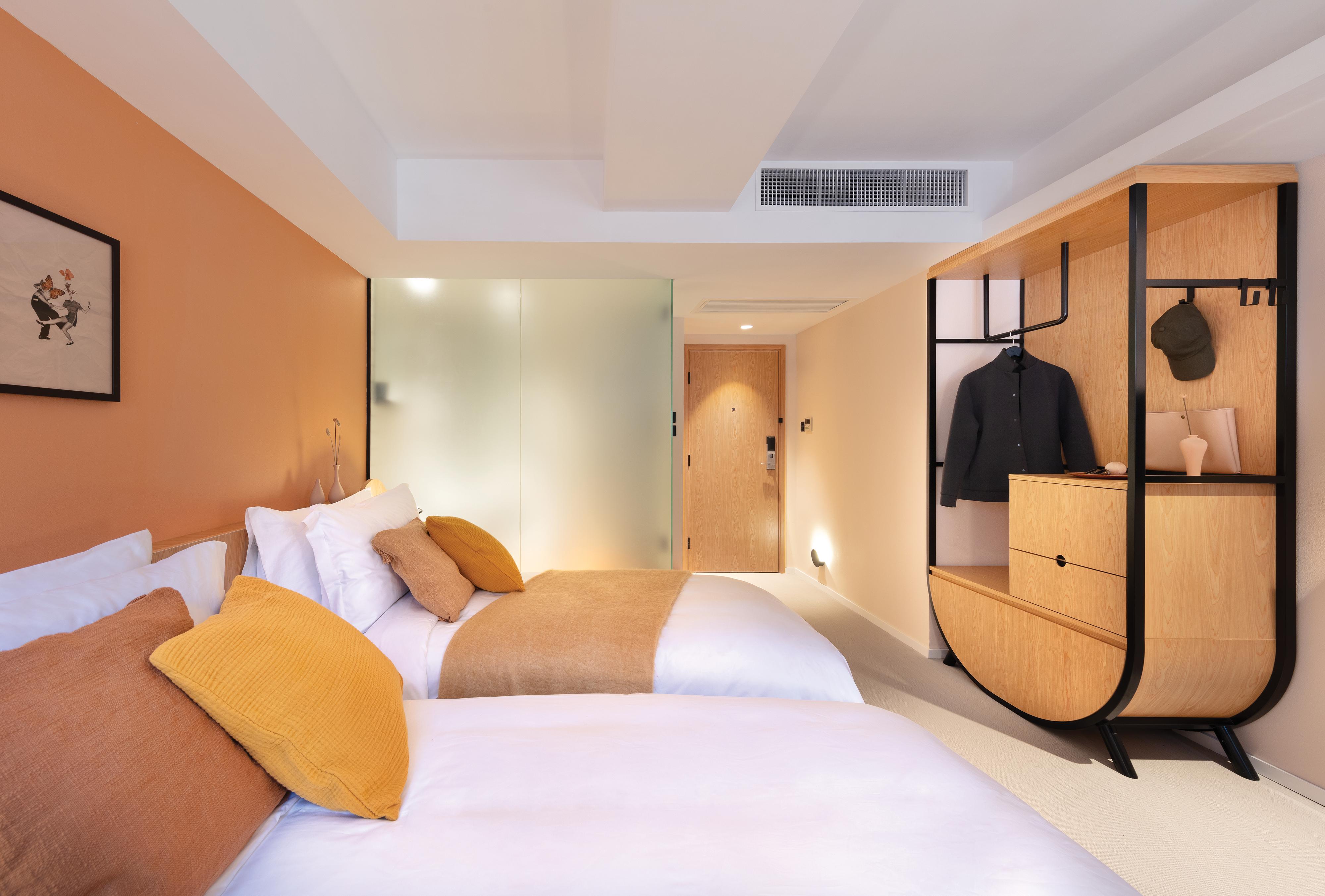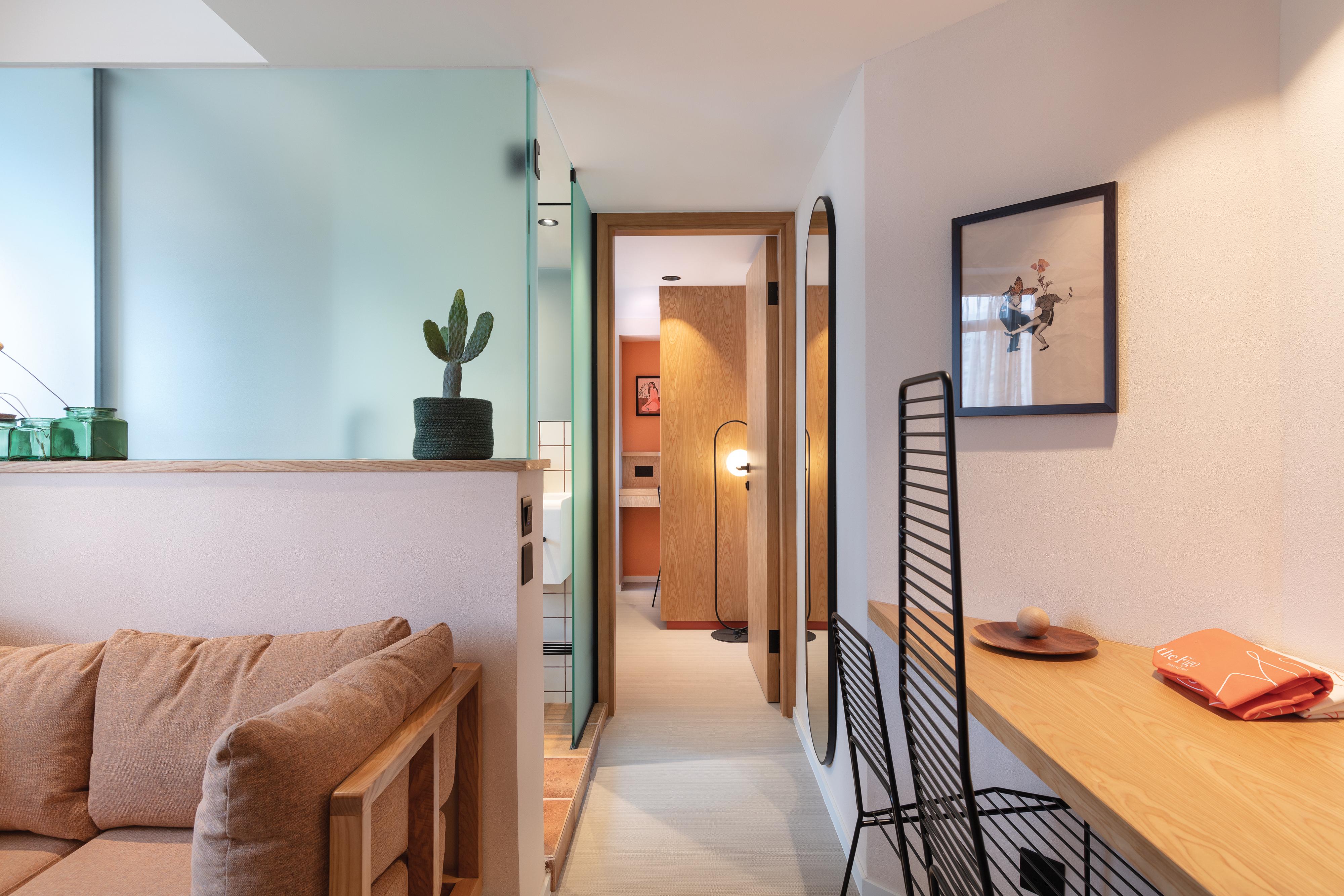 of your 18 m² studio room. Complete with two twin/a queensized bed(s), bespoke handmade furniture, and stocked full of essential amenities for your stay.