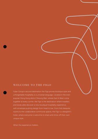 Yulan Group’s second destination the Figo proves boutique style and unforgettable hospitality is a universal language. Located in the everpopular Hong Kong district Sheung Wan, where East & West come together at every corner, the Figo is the destination where travelers and locals alike discover a new boutique hospitality experience, with envelope-pushing design from head to toe. From fully bespoke rooms to the collaborative communal spaces, the Figo is a designer’s
