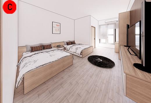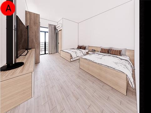 Ruang kamar yang tersedia mulai dari tipe 24,tipe 36 dan tipe 45 dimana setiap tower memiliki 48 unit kamar tipe 24, 24 unit kamar tipe 34 dan 24 unit kamar tipe 45,dan setiap tipe kamar dapat menampung 3-6 jiwa.