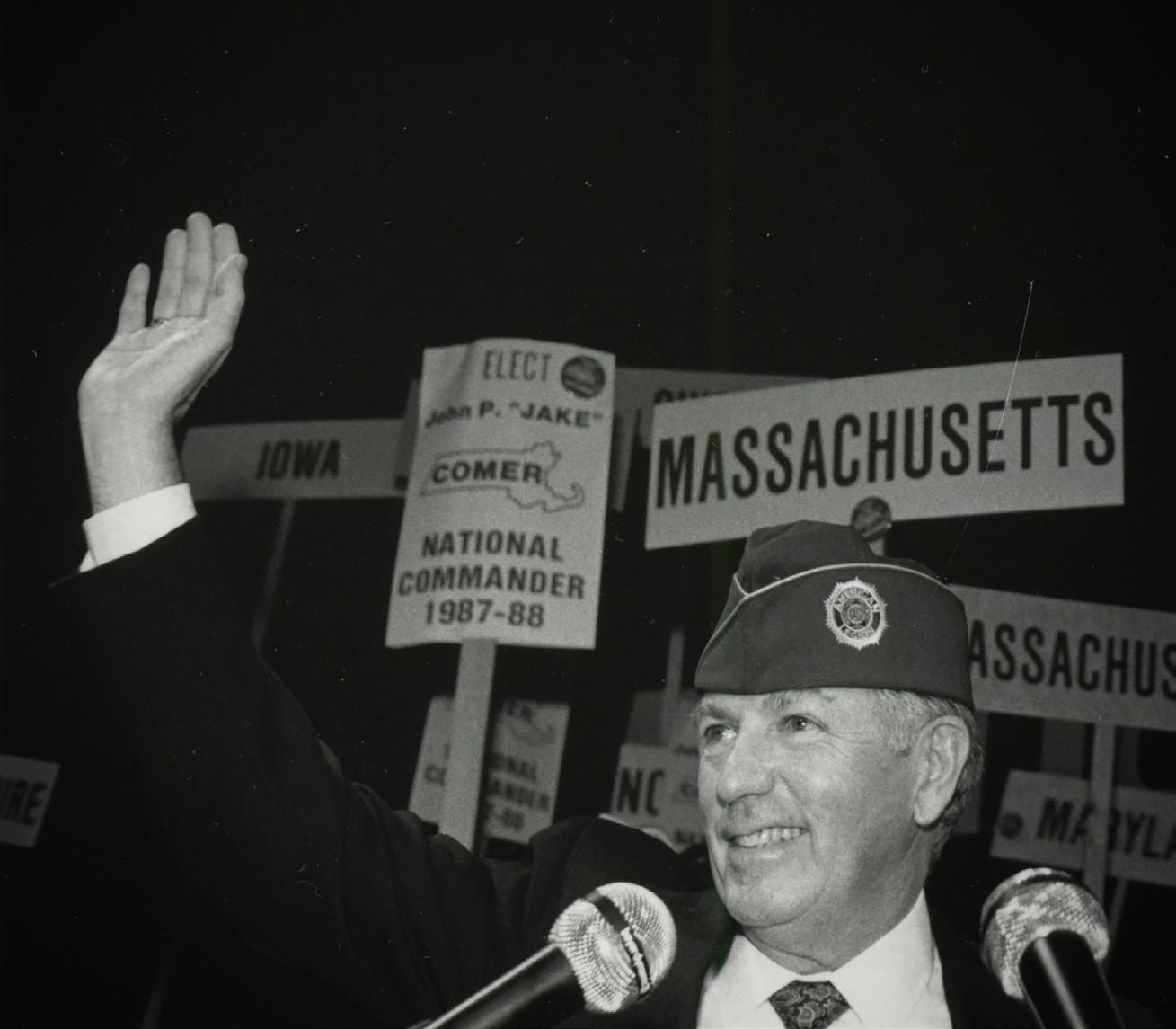 “Jake Comer has probably gone to more Legion functions than anyone I have ever known in my life,” explains Paul A. Morin, one of the leaders Comer mentored, who served as National Commander of The American Legion in 2006 and