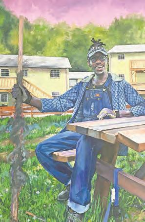 Artist Jurrell Cayetano has three works on display: Jay at the Community Farm, Panther (Profile) and Paula (Asleep). Cayetano said Jay at the Community Farm was inspired by a photograph taken during the COVID-19 pandemic.