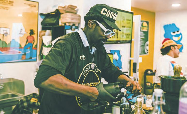 Raised in Atlanta, Voltaire carries the flavors of his Haitian father and Jamaican mother into every creation. In his early adulthood, his father transformed his view of coffee. “I thought coffee was nasty growing up,” Voltaire admits. “But my dad drank Bustelo every day. It connected us, and it changed how I saw coffee.” Signature drinks like Wah Gwan, Lion of Judah, and Yardie aren’t just names. They’re echoes of his lineage. Ingredients like ginger, hibiscus, and sorrel aren’t just flavors in the drinks he creates; they’re threads of heritage woven into each cup. The first drink he made, The Joy, was named after his mom.
