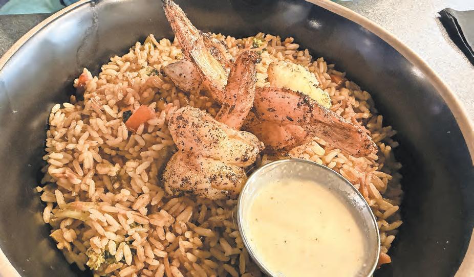 The entree menu includes Big C’s rice bowl, a combination of seasoned rice, vegetables, and three grilled jumbo shrimp. Served with a side of oyster sauce, the dish was both fun to eat and flavorful.
