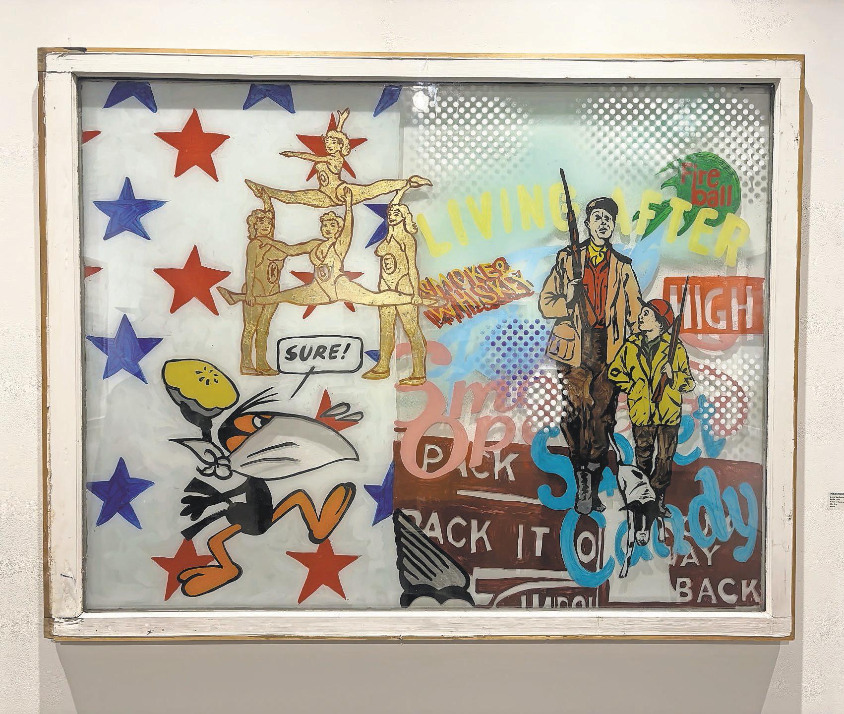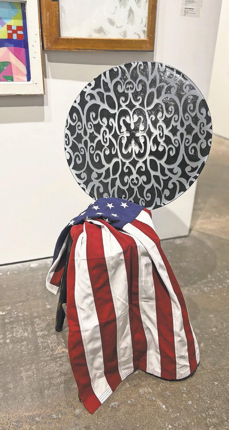 “What you have here is installation, paintings, sculpture,” Norling said, describing work that also references the upcoming semiquincentennial, the 250th anniversary of the United States. Red, white, and blue