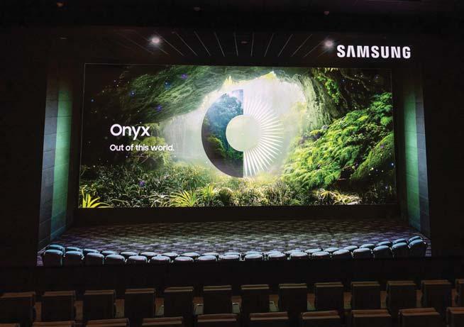 In April last year, Samsung Electronics unveiled the secondgeneration Onyx product at CinemaCon 2025, the world's largest film industry expo, eight years after the first generation. It became the first movie screen, rather than a projector, to receive Digital Cinema Initiatives (DCI) certification. That means it meets the digital cinema standard specifications established by DCI for picture quality, sound, and content security features.