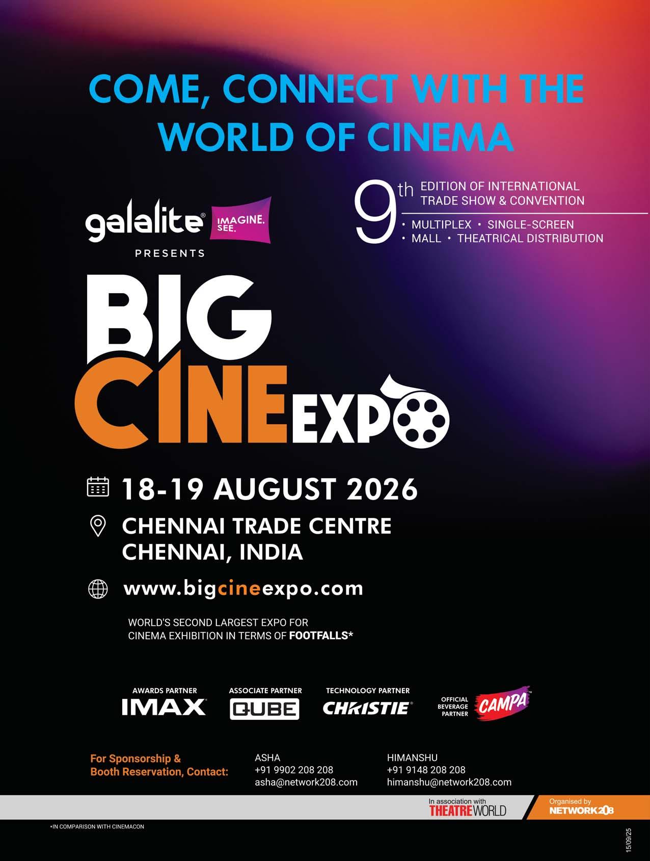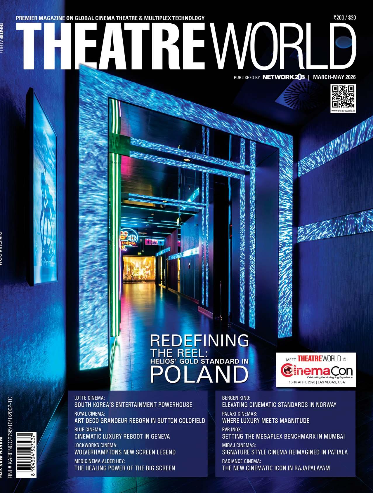 TheatreWorld is a quarterly publication, on the motion picture exhibition industry, for private circulation. It reaches out to subscribers, mainly theatre owners and trade professionals around the world. Additional copies are being promoted at major international industry tradeshows. TheatreWorld seeks the healthy promotion of the theatre industry through dissemination of useful information. Some of the information is compiled from industry sources, trade journals, company brochures for the benefit of readers, especially, theatre owners. TheatreWorld acknowledges with thanks the authors and publishers of these printed materials. Views expressed in the articles are those of the authors and not necessarily of TheatreWorld. TheatreWorld is a trademark under registration. The contents of TheatreWorld are under copyright registration. All rights reserved. Reproduction by any means in whole or part without written permission is prohibited. Unsolicited printed material is welcome but no responsibility is undertaken for the same and will not be returned. TheatreWorld does not take responsibility for the absolute accuracy of information published.