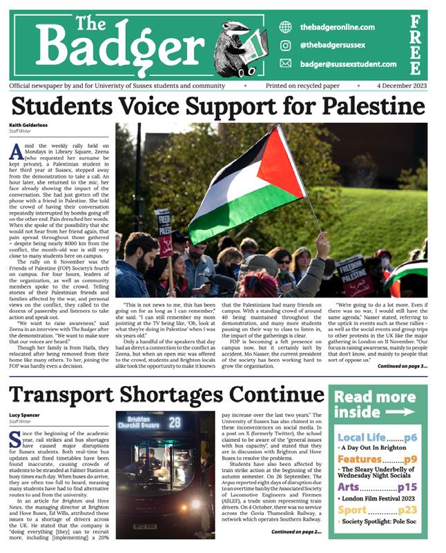 the little time they have. It’s an issue with an SU that is unwilling to hire staff for the areas that need it most. I mean - we have a committee with over ten members for sustainability, but only one person (who also has several other committees to deal with) dealing with the media committee. It’s also very very ironic that there are four “Communications” SU staff members, but trying to get in contact with them is like shouting into the abyss…you’re lucky to get a response inside ‘ten working days’. There are a lot of things I’ll miss from my time at The Badger, but dealing with all the administrative nightmares will not be one of them. Looking on the brighter side, I’m so happy for every single person who has picked up a copy of The Badger. Seeing someone flick through it in Falmer house, or getting a message on Instagram telling me they loved the puzzles makes me so happy and has given my life so much joy. The Badger has gone from being a distant memory to the forefront of a lot of people’s minds, and I am so grateful for it. Next year’s committee is going to take us to new heights, so make sure to pick up the Freshers’ edition in September.