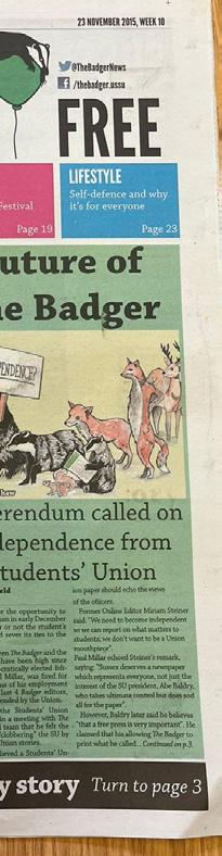 Taking up my role as Editor-inChief is Abi Summers - someone who has been on the paper longer than myself and has seen its rise, fall, and (even greater) rise again. I believe that she will do an incredible job continuing The Badger, and I’m excited to see where she takes it from here.