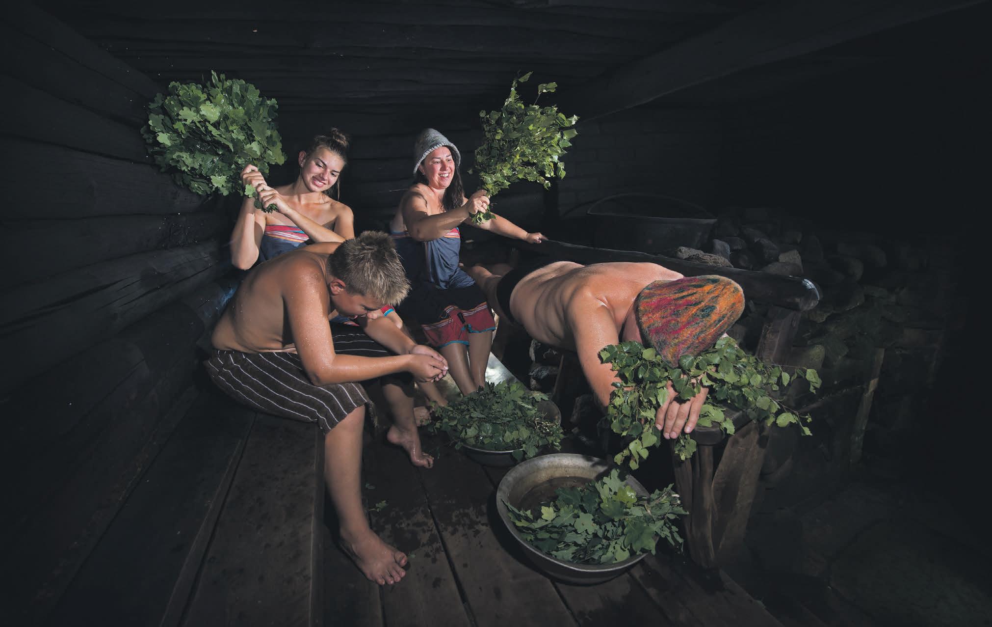 Lammasmäen saunakylän savusaunoissa ja turvesaunassa, saimme kokea perinteiset saunatavat loitsuineen Eda Veerojan savusaunassa Võrumaalla, Toidupadan savusaunan lämmitykseen tutustuimme