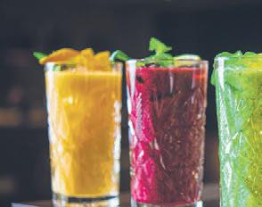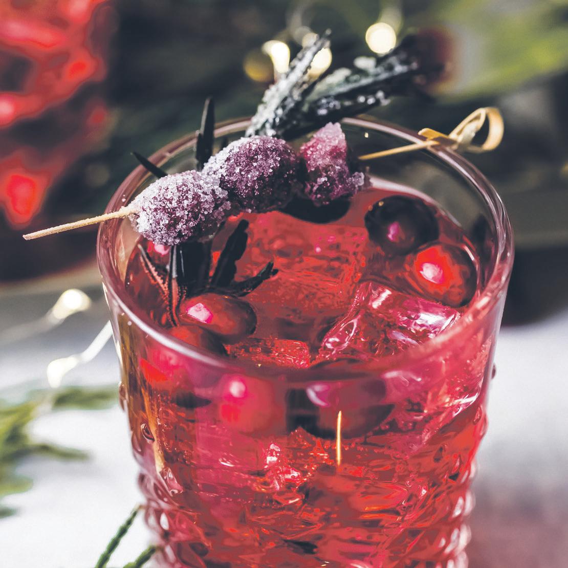 Helposti valmistettava vitamiinibuustericocktail: kaada kaikki ainekset jäiden päälle lasiin, lisää vadelmia tai karpaloita ja koristele appelsiinilastuilla.