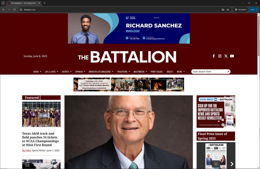 TexasA&MStudentMedia(TASM)isTexas A&M’sstudent-runindependentmedia organizationwhichincludespublications:The Battalion,MaroonLife,andAggieland Yearbook.Asformerly“TheBattalion,”wewere establishedin1893andservetheAggie communitybyreportingonissuesofinterestto readersandprovidingaforumforstudent expression.
