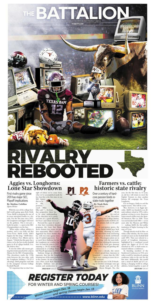 Incollaborationwith TexasStudentMedia,this double-sidedissue explorestherichhistory betweenTU&TexasA&M