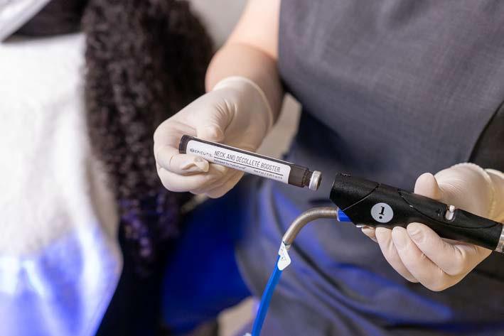 HydraFacial uses advanced, patented vortex technology to deeply cleanse the skin and e ectively deliver botanical ingredients containing nutrients such as hyaluronic acid, horse chestnut seed extract, red algae extract, copper, zinc and magnesium peptides to where they are most beneficial to the skin. In addition, HydraFacial also delivers powerful antioxidants to counteract damage by free radicals – from pollution, sun and stress – which can degrade the skin and accelerate the ageing process.