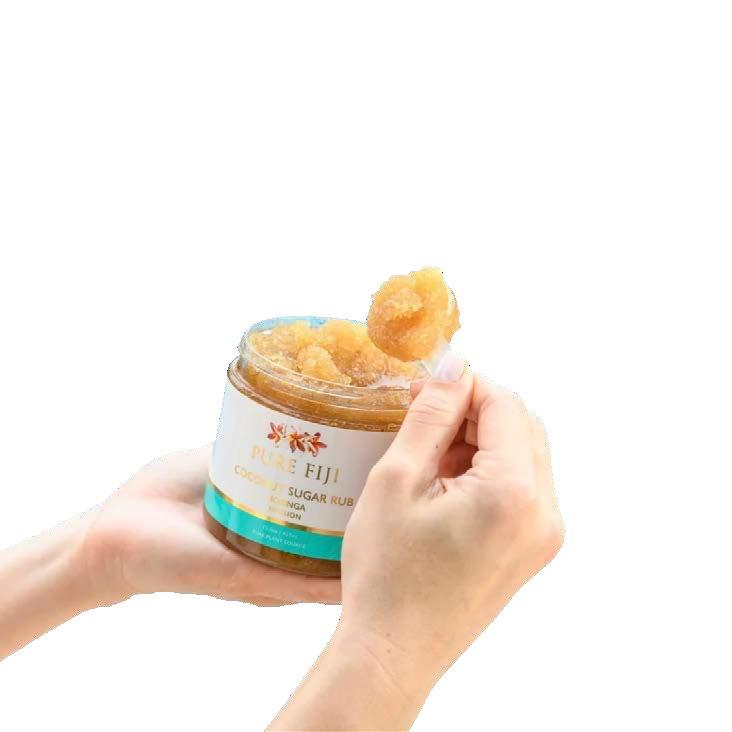 cane harvested from the sun drenched plantations of Fiji with exotic tropical nut oils nourish the skin to create the ultimate healthy glow e n joy as milk fro m the co c o n ut c om b ined wit h a and coconut oil are gently massaged into the skin by an application of pure cane sugar and tropical nut oil ridding the body of dead skin.
